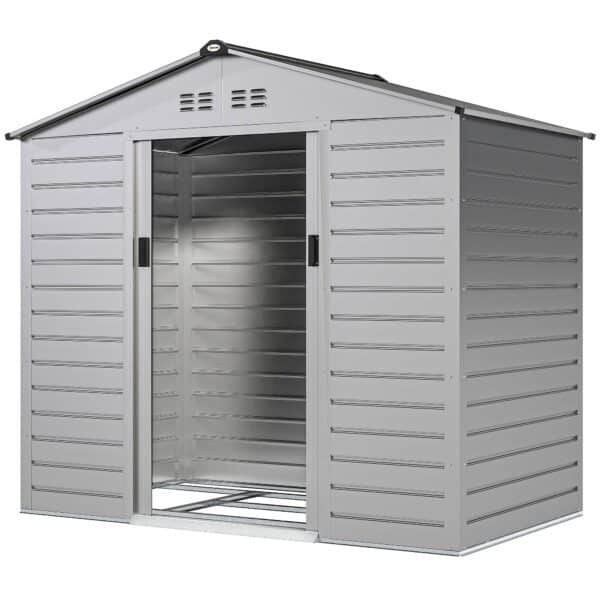Opbevar dine haveredskaber og udendørsudstyr sikkert i et rummeligt haveskur! Dette robuste og vandtætte skur har dobbeltdøre for nem adgang og er perfekt til at holde dit udendørsområde organiseret. Med fire ventilationsåbninger sikrer det optimal beskyt