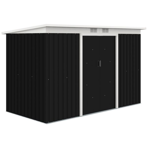 Haveskur, redskabsskur med skydedør, ventilationsvindue, skråtag, udendørs, stål, mørkegrå, 280 x 130 x 172 cm