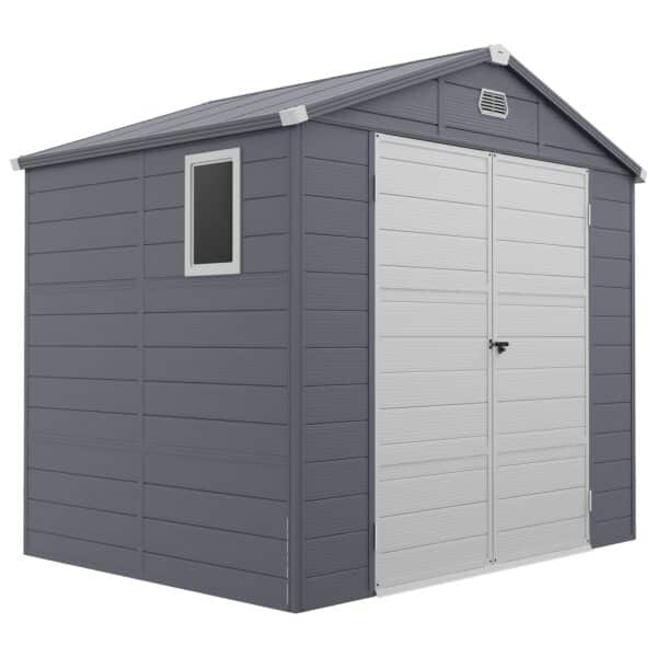 Haveskur, redskabsskur med ventilationsvindue, plastik, metal, 240 x 190 x 180/228, grå